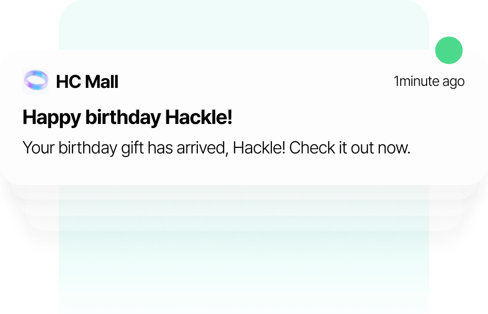 With Hackle's data analytics tool, tracking push message performance is automatic. Easily measure not only delivery and CTR but also post-message metrics like purchase completions, new member sign-ups, and retention.